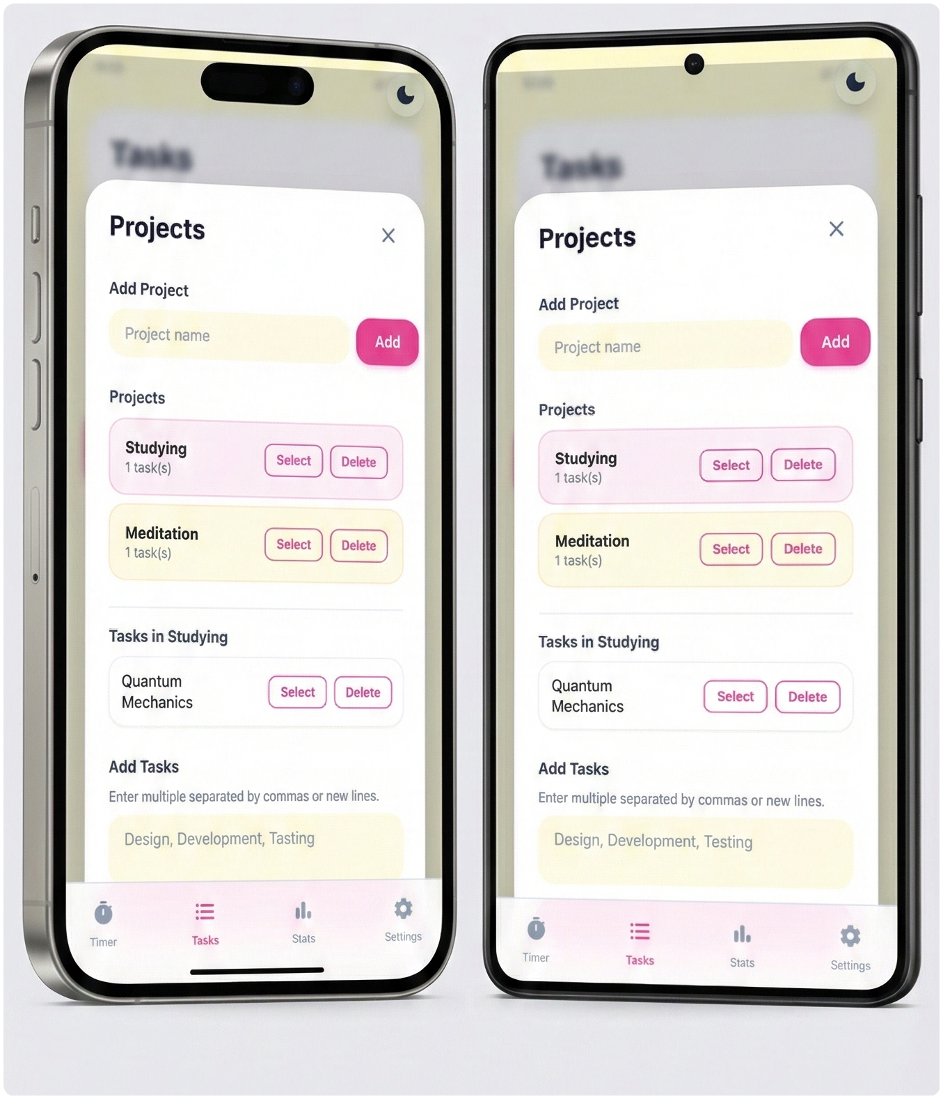Domoro keeps your focus sessions intentional, organized, and easy to review. Plan your day, connect sessions to projects, and track progress without the clutter.