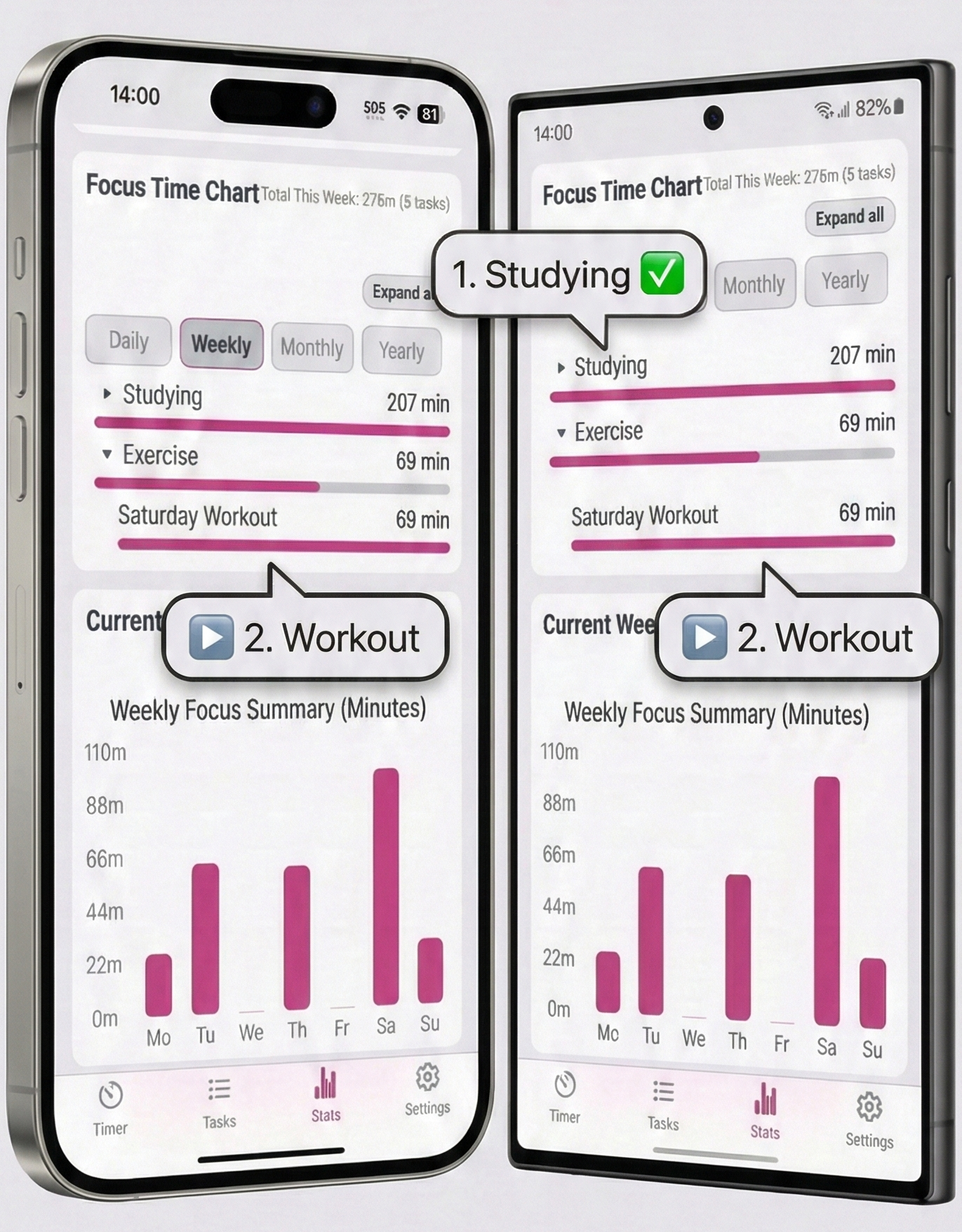 Set a clear plan for each session, then stay in the zone with a clean, quiet UI.